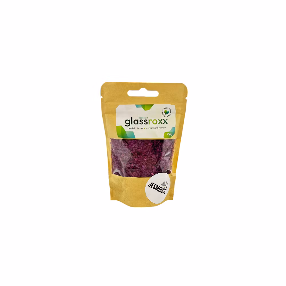 GlassRoxx är ett glasgranulat tillverkat av återvunnet glas och färgat med organiska, hållbara pigment. Det är perfekt för att skapa terrazzo-effekter i Jesmonite AC100.