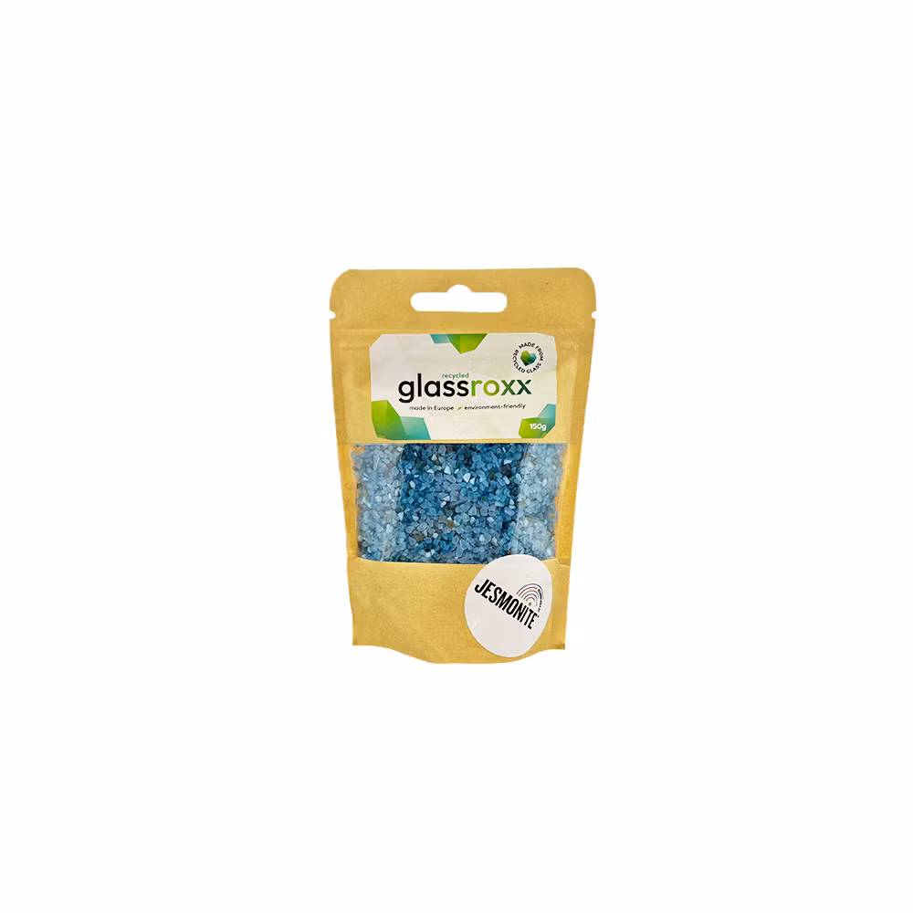 Blanda helt enkelt GlassRoxx med Jesmonite AC100 enligt och använd blandningen för att gjuta önskade objekt. Det återvunna glaset ger en unik och miljövänlig touch till dina projekt samtidigt som det skapar fantastiska visuella effekter. Produkten är säker att använda, dammfri och inte vasst, vilket gör den idealisk för kreativa projekt och konsthantverk.